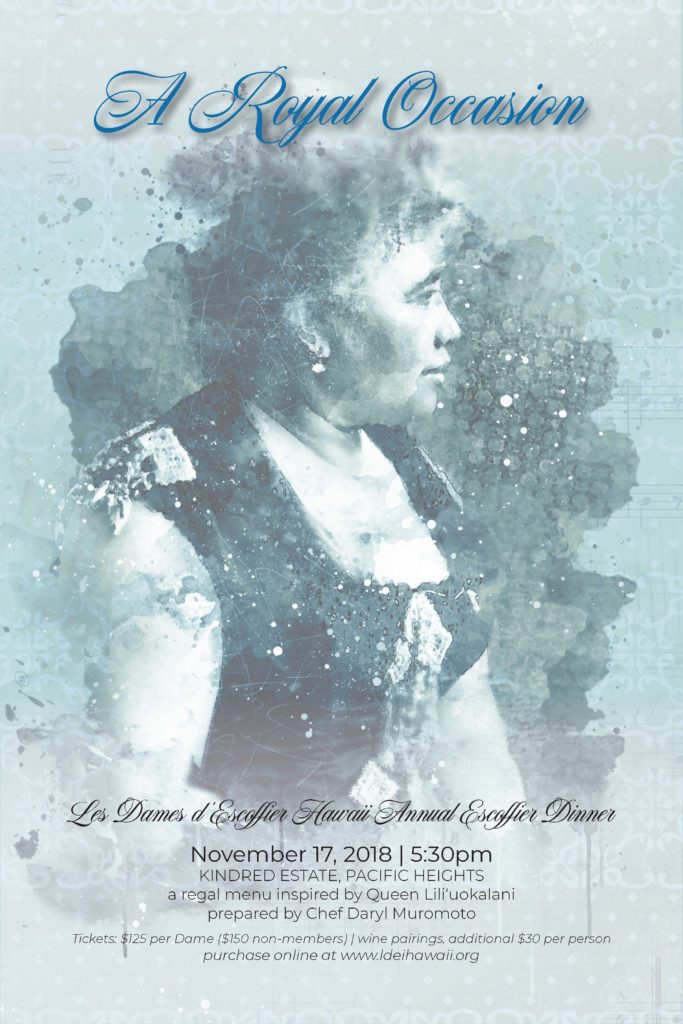 Inspired by Queen Lili‘uokalani, this year’s Escoffier dinner is a limited-seating event with only 40 tickets available. Dress is mu‘u mu‘u chic. Our venue for the evening is a private estate in Pacific Heights. Ticket sales open November 1; purchases are limited to Dames only until November 7. Following this introductory period, ticket sales will be opened to the general public.