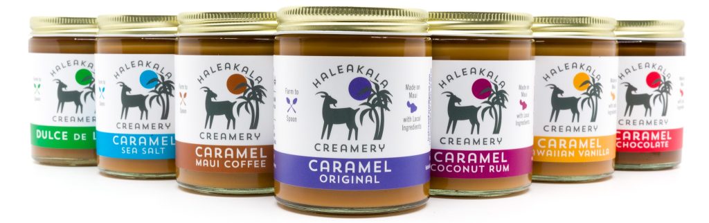 What began as a simple desire to make our own ice cream grew into the realization of a dream we didn’t even know we had. We started Haleakala Creamery to be part of the local food movement, and to create a beautiful lifestyle to share with our children. We started by selling our caramel sauces on the side of the road, and have since grown into a full-scale goat dairy on the slopes of Haleakala, Maui, handcrafting small-batch goat milk products with a focus on local ingredients and healthy goats. We specialize in the production of Goat Caramel, “Goatlato” and Chèvre from our own farm kitchen in Kula.