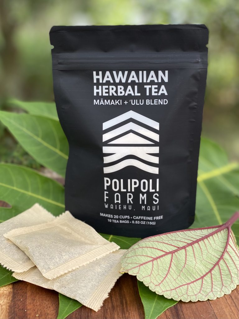 Our herbal tea is grown under the Maui sun, harvested by hand, and prepared in small batches. This premium blend tastes slightly sweet yet earthy, with a hint of ‘ulu flavor. It goes down smooth and is delicious served either warm or chilled. Both ‘ulu and māmaki are naturally caffeine free.
